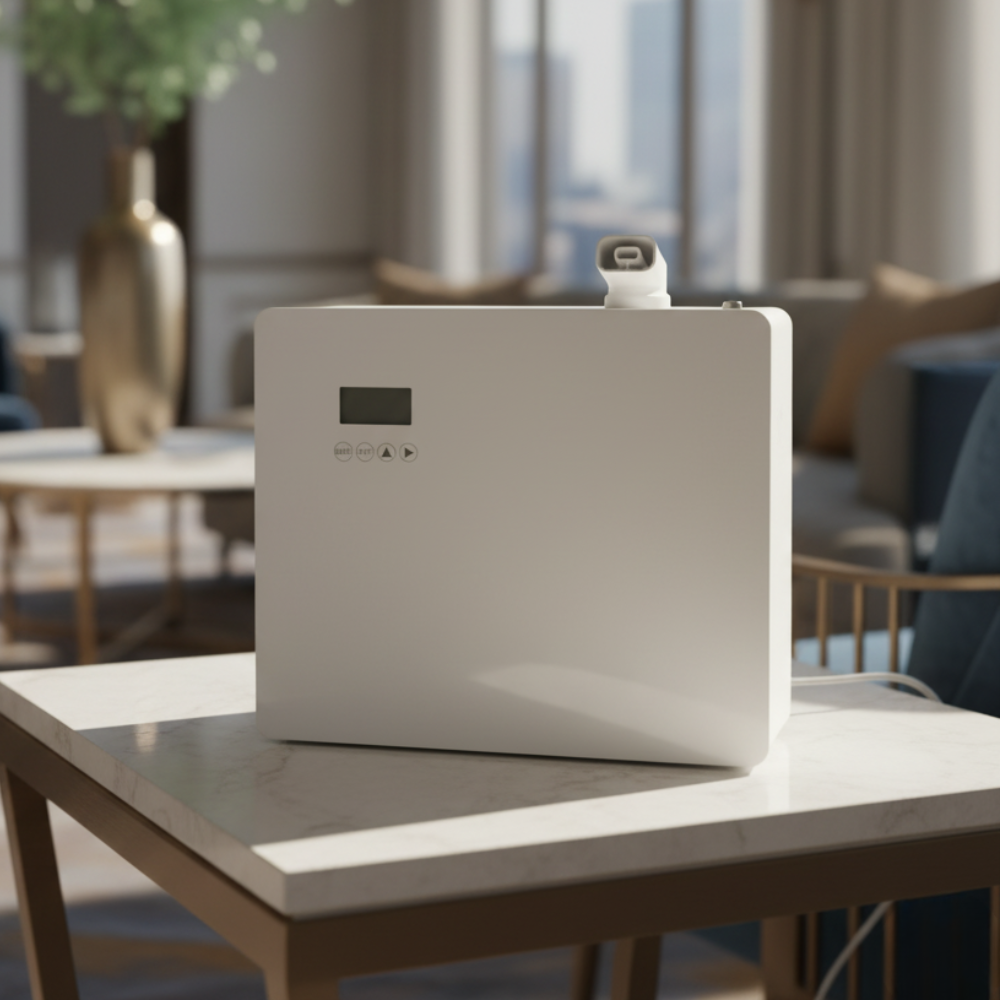 The AstroPro500 is a commercial-grade scent diffuser designed for larger spaces that need reliable, continuous fragrance delivery. Built for use with aromatic solutions, this unit combines high-performance diffusion with modern smart features — perfect for homes, offices, retail, clinics, and wellness spaces.
